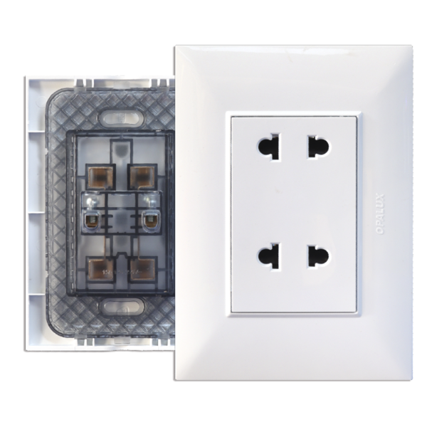 TOMA DOBLE UNIVERSAL 1 DADO 15AMP “OPALUX” C/PROTECCIÓN, MASTER 200